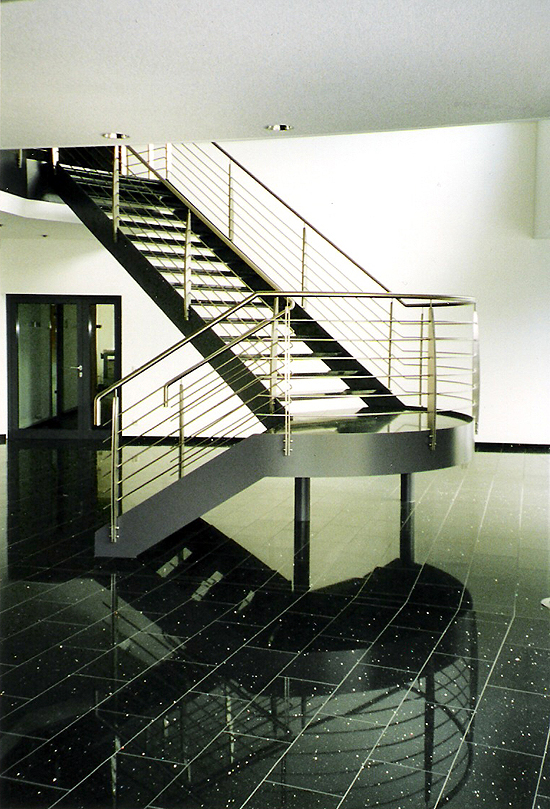 Bei der Wahl der Materialien greifen wir auf verzinkten oder lackierten Bau- oder Edelstahl mit Holz-, Stein oder Gitterrostbelag zurück.